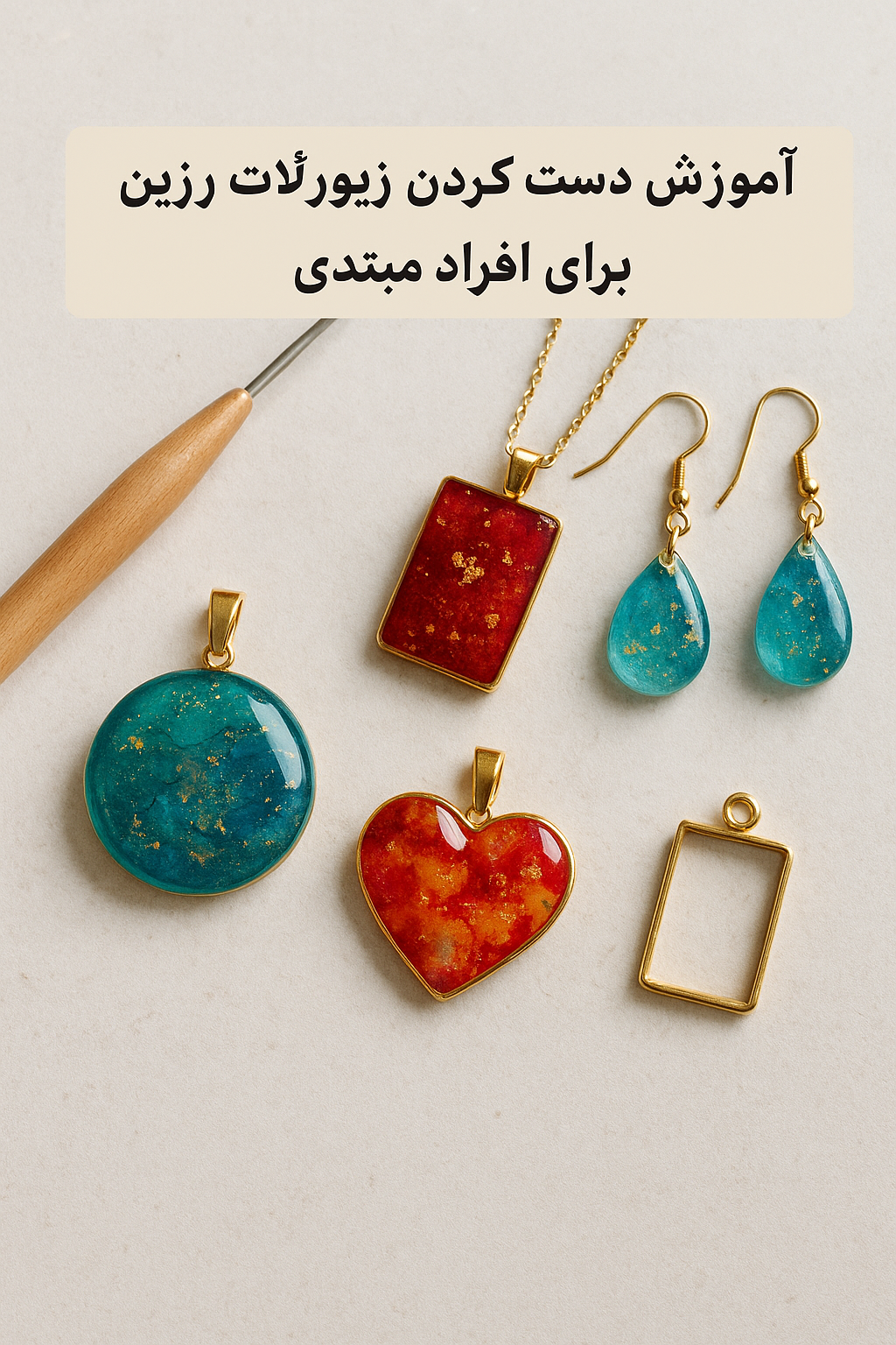 در این راهنما تمام نکات لازم—از انتخاب رزین مناسب تا ابزار، مراحل ساخت، نکات جلوگیری از حباب، زمان خشک شدن، ایدهها و خطاهای رایج—بهطور کامل توضیح داده شده است تا بدون تجربه قبلی بتوانید اولین زیور خود را بسازید.