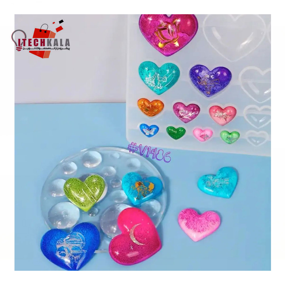 قالب سیلیکونی: برای کار قالب گیری از قالب سیلیکونی استفاده می شود. قالب سیلیکونی در شکل هایی مانند مربع ، دایره، مستطیل، قلب، کره، انواع گل ها و ستاره ها وجود دارند که برای ساخت زیور آلات، جاسوییچی، مجسمه ها و انواع وسایل تزیینی استفاده می شوند.