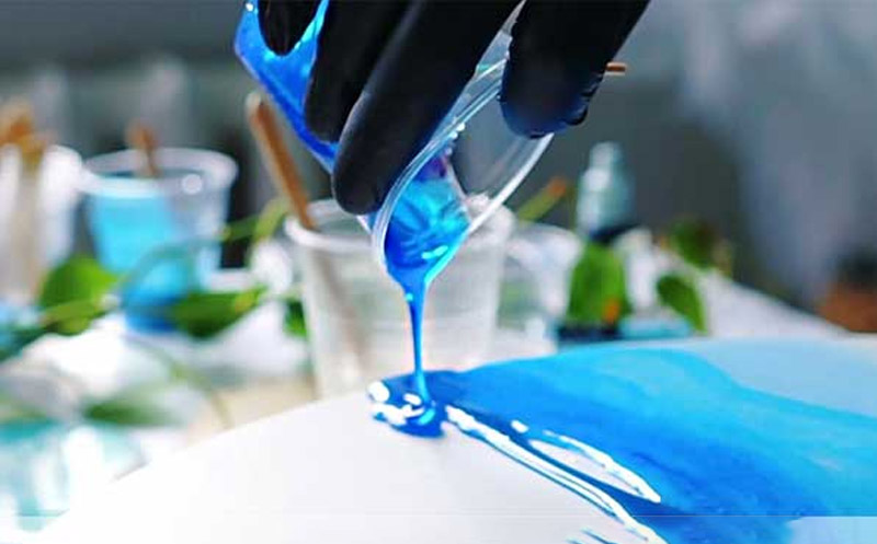 - رزینهای هنری باید غلیظ باشند تا رنگها بیش از حد پخش نشوند و طراحی کنترلشده باشد.